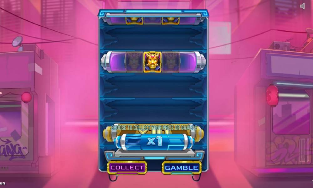 Когда одновременно появляются обычный знак Scatter и символ Gamble Scatter, становится доступной функция Gamble. Здесь можно разыграть приз для получения более крупного вознаграждения или забрать свой выигрыш сразу. Если в результате выпадут не множители и не дикие стеки, а пустые сегменты, пользователи ничего не выигрывают.