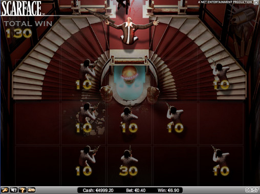 Scarface – видеослот с пятью барабанами и двадцатью линиями, менять количество которых нельзя. Ставить на линию можно от одного цента до пяти евро. Так что играть на игровом автомате разрешается по максимальной ставке сто евро.