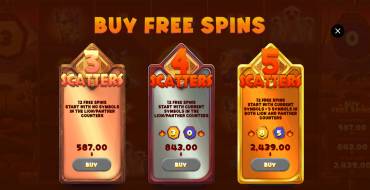 Гемблер может выиграть или купить запуск фриспинов. Для выигрыша нужно поймать 3, 4 или 5 Scatter на любых ячейках. Купить можно это же количество. Независимо от количества Scatter фриспинов будет 12. Отличие между пакетами есть только в том, какое значение будет на старте у счетчиков Lion и Panther. Поэтому и цена покупки 2 старших пакетов отличается: чем большее число накоплено на счетчиках — тем дороже придется заплатить за запуск фриспинов.