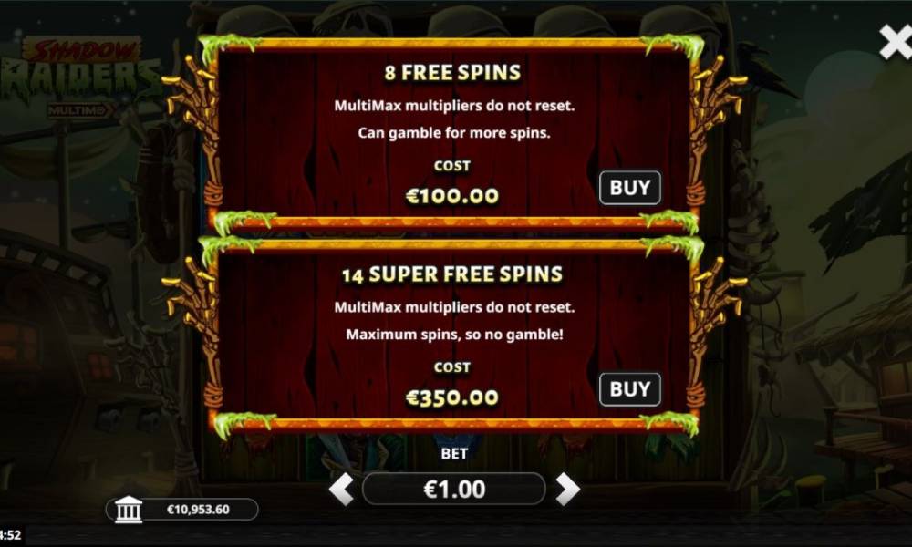 Бесплатно играть в Shadow Raiders MultiMax вы можете или на нашем сайте или на сайте онлайн казино.