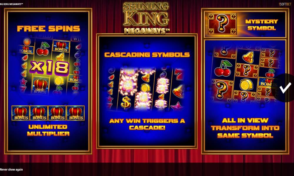 Любая выплата запускает Cascading Wins. О них и других возможностях читайте ниже в обзоре видеослота Shining King Megaways iSoftBet на Casinoz.