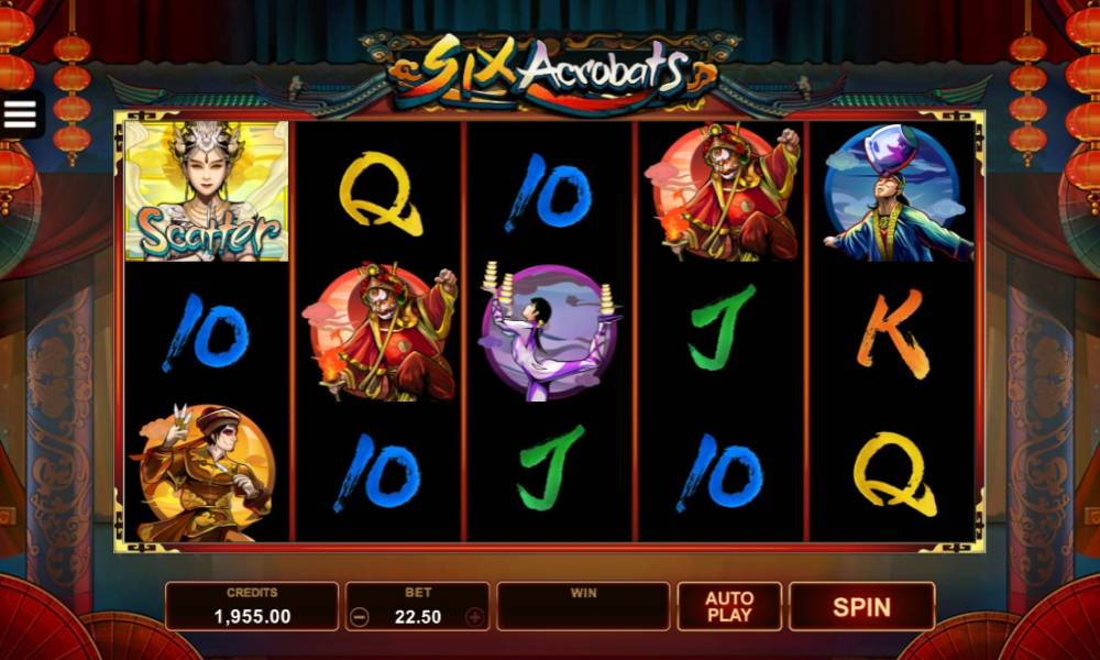 Невероятному мастерству китайских артистов цирка посвящен видео-слот Six Acrobats, доступный в онлайн-казино на платформе Quickfire (Microgaming).