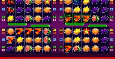 Sizzling Hot Quattro имеет четыре набора из пяти барабанов каждый. Они представлены в четырех секторах основного экрана. В них по пятнадцать символов. Они активируются при выборе определенного количества линий. Если задействовать пять линий, запускается один набор колонок. При десяти полосах будут вращаться барабаны на двух экранах. Пятнадцать включают три сета, а двадцать линий – четыре. Ставки по всем линиям неизменно равны. На одну линию принимается от двух до пятисот кредитов. Получается, что минимальная сумма на кону может быть равна десяти монетам (при одном наборе), а максимальная достигает десяти тысяч (при четырех наборах барабанов). В целом, здесь действует такой же набор функций, как в обычной версии «Раскаленного». Доступны лишь базовые картинки, символ Scatter и раунд на удвоение начисленной выплаты. Простые изображения приносят выигрыши, образуя на активных линиях непрерывные цепочки из нескольких одинаковых символов. При этом располагаться картинки должны, начиная с первой колонки. Выплата начисляется лишь за самую длинную последовательность на отдельно взятой полосе. Сумма выигрыша зависит от двух параметров: ставки, сделанной на линию, и коэффициента образовавшейся комбинации. Для расчета они перемножаются. Если вариантов несколько в одном спине, выплаты складываются. Игра по равным шансам запускается по желанию клиента. Здесь без сюрпризов: называете наугад закрытую карту, чтобы удвоить выплату. Если ошибетесь, лишитесь ставки. Разрешается действовать несколько раз подряд, пока не дойдете до максимума, но останавливаться можно на любом этапе. Производитель не предоставляет данные об уровне возврата.