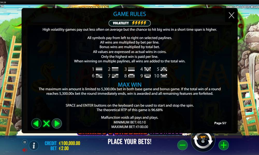 Опробовать автомат Snakes and Ladders Megadice от провайдера Pragmatic Play без риска вы можете прямо на нашем сайте. Запустив демо-режим, вы сможете ознакомиться со всеми его правилами, после чего вы сможете использовать полученный опыт при игре на деньги.