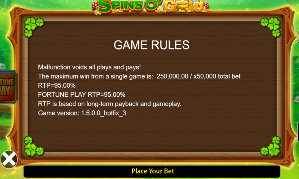 RTP слота Spins O' Gold Fortune Play, волатильность и частота выигрышей