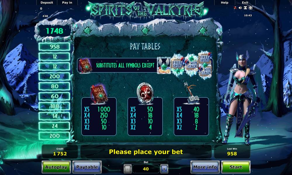 Разработчики азартных онлайн-игр неоднократно посвящали валькириям видео-слоты. Данный обзор посвящен модели Spirits of the Valkyrie компании Novomatic.