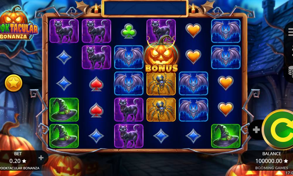 К Хеллоуину 2024 года студия Booming Games выпустила тематический слот под названием Spooktacular Bonanza. У него большое поле, выплаты без линий, каскады и случайные дополнительные множители во фриспинах. Бонусный функционал невелик, но благодаря каскадам играть все равно интересно. Можно получить выплату не более х6500.