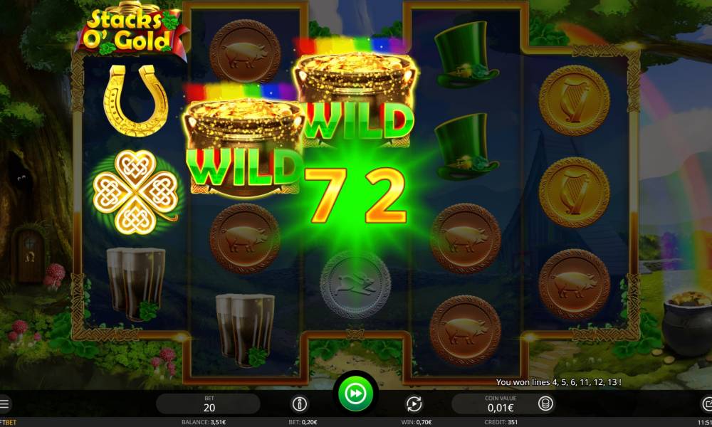 Игровой автомат Stacks O’Gold отличается средним теоретическим возвратом. А значит, игрок должен понимать, что его ждут как удачные, так и проигрышные серии ставок. При высокой волатильности, слот платит редко, но позволяет сорвать хороший куш.