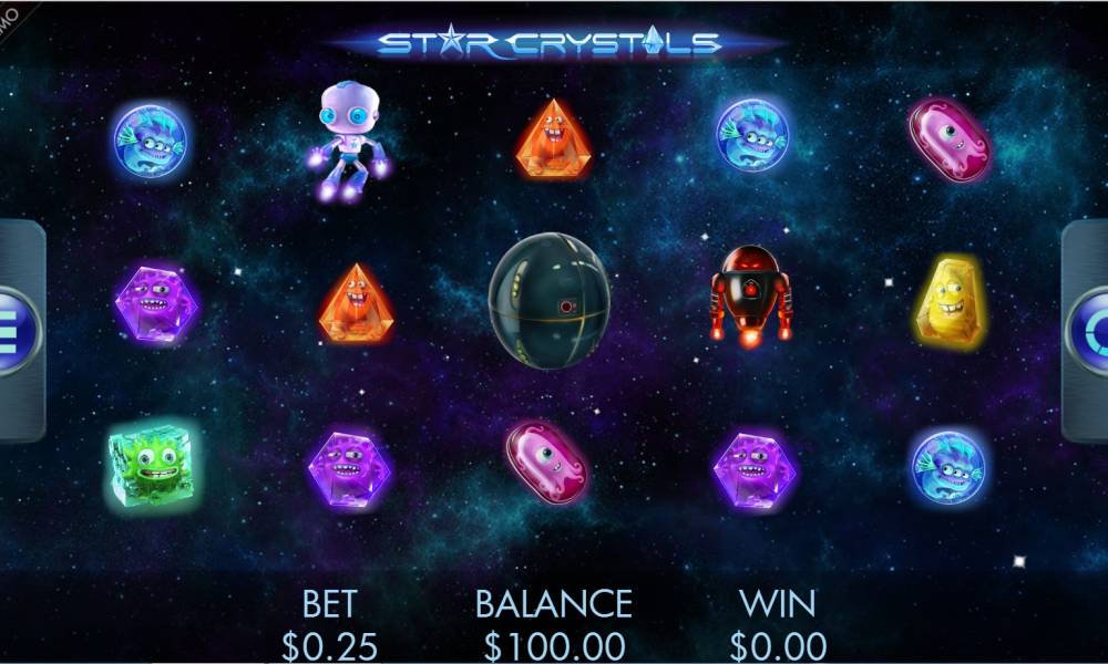В Star Crystals пять барабанов, который вращаются в каждом спине. После их остановки картинки выстраиваются по схеме 5х3. Цель – собрать оплачиваемую комбинацию из одинаковых символов или получить выигрыш другим доступным путем.