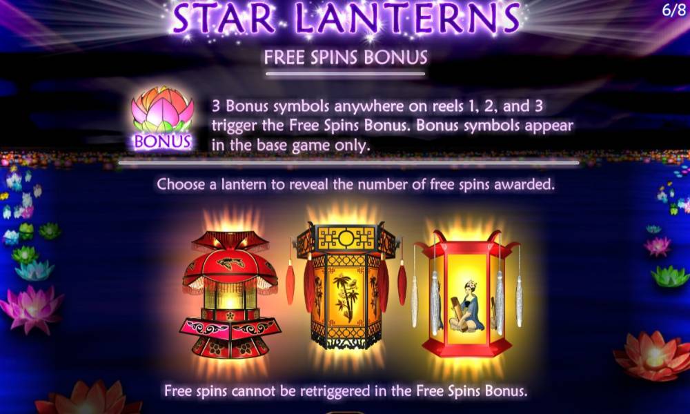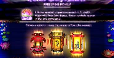 Free Spins – В начале раунда нужно выбрать один из трех фонариков, чтобы узнать, сколько фри-спинов вам полагается. Затем начинаются розыгрыши на деньги казино. Ставка остается прежней, и менять ее нельзя. Бонусные вращения не могут быть продлены.