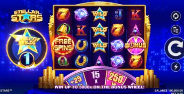 Stellar Stars выпущен студией Just For The Win в середине лета 2024. Это слот без какой-то определенной тематики, похожий на старые игровые оффлайн-автоматы. Бонусный функционал в нем более широкий и разнообразный, чем у старых слотов: есть колесо фортуны с 3 видами призов (фриспины, деньги, необычные Wild), фриспины, необычная функция с накоплением Wild и респины. Гемблер может выиграть до х5000.