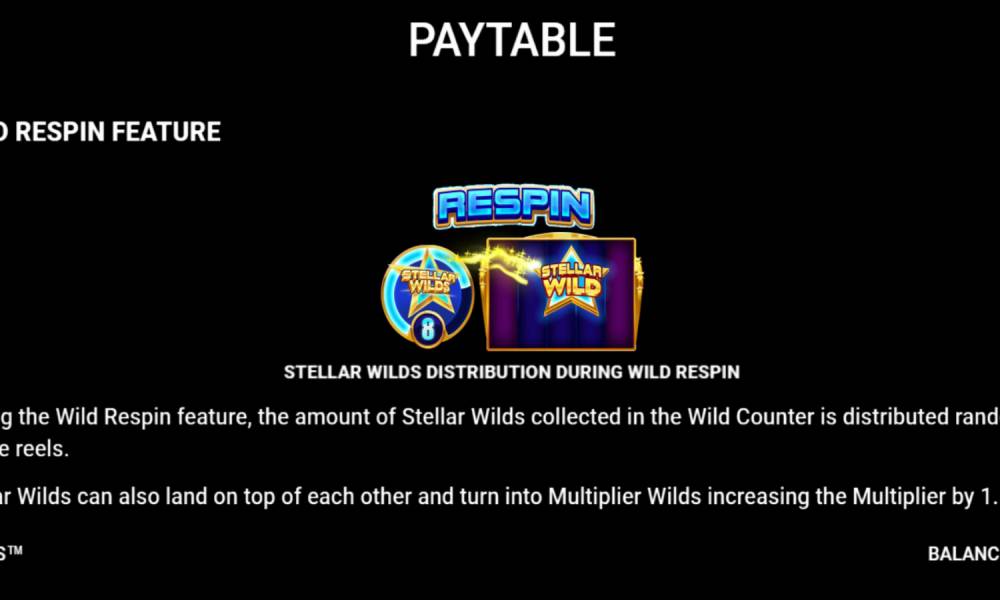 Поиграть в деморежиме до срабатывания функции Wild Respin — чтобы понять, как работают Stellar Wild.
