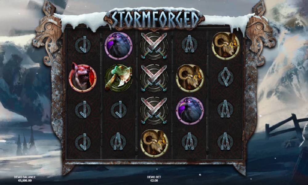 Stormforged включает 5 барабанов и 4 ряда, с 14 фиксированными линиями выплат. Диапазон ставок -– от 0,10 до 100 единиц, что позволяет выбирать оптимальный размер для любого бюджета на каждом этапе игры. Основные символы включают карты (от J до A), мечи, топор, шлем, барана, птицу и волка. Знаки высокого уровня могут принести до 50-кратного выигрыша за 5 одинаковых на линии. Существенно увеличивают выигрышный потенциал слота всевозможные бонусы и фриспины.