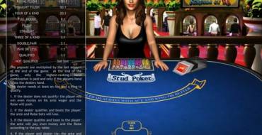 Stud Poker 3D – виртуальная версия стад покера, в которой карты игроку сдает красивая девушка, стоящая за столом в зале казино. Она изображена очень реалистично, а позади нее люди играют на игровых автоматах, ходит обслуживающий персонал – в общем, идет обычный процесс.