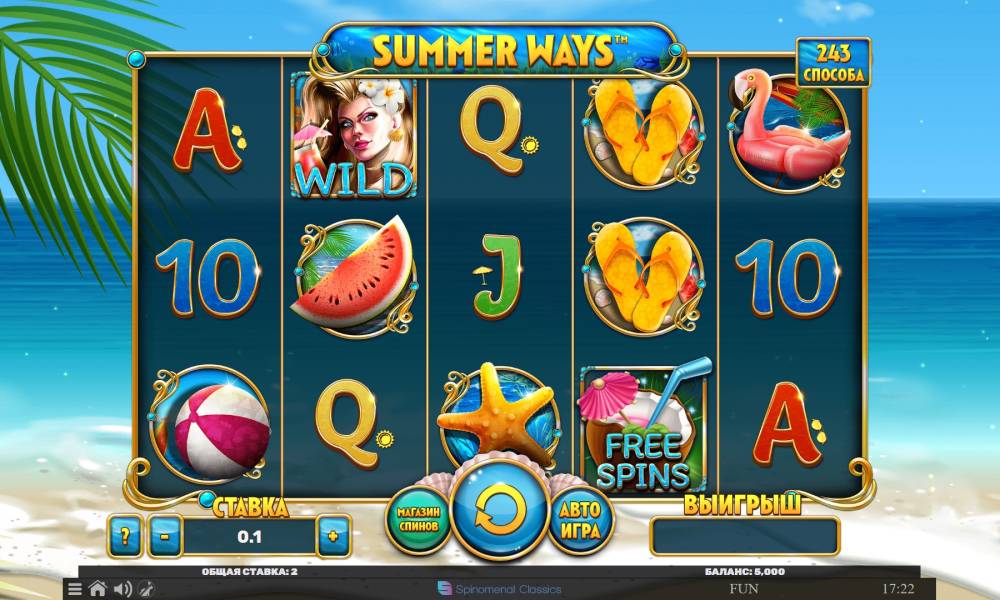 Игровой автомат Summer Ways от Spinomenal готов предложить пользователям атмосферу летнего пляжа и соответствующих развлечений. Яркая графика, увлекательный геймплей и заслуживающие внимания бонусы ждут игроков!