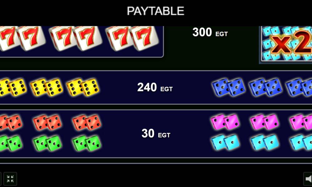Multiplier Feature. Четыре низкооплачиваемых символа (кубики с 1, 2, 3 и 4 точками) могут принести более крупные награды. Девять одинаковых знаков на поле из этой категории всегда приносят Multiplier х2 к сумме, начисляемой согласно таблице выплат. Соответственно оплата будет произведена по всем 27 линиям и умножена на 2.