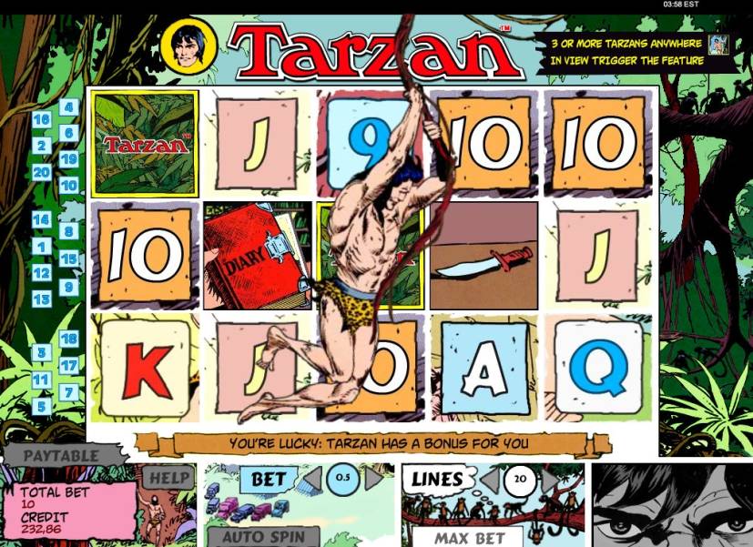 Кроме того, он появлялся в многочисленных комиксах. Именно в стиле рисованных историй выдержан игровой автомат Tarzan, который предлагается клиентам PartyCasino.