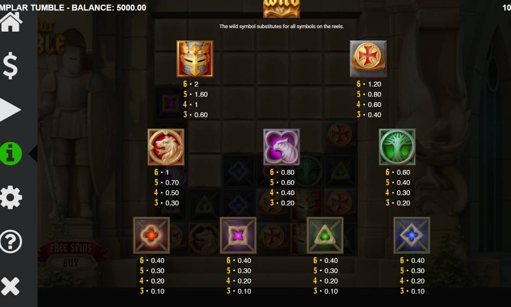 Игровой автомат Temple Tumble от провайдера Relax Gaming посвящен рыцарям средневековья. Если вам улыбнется удача, то в этом слоте вы сможете выиграть очень крупные призы, вплоть до 17280 ставок! Также здесь имеется функция покупки бонуса, что делает геймплей более интересным и увлекательным.