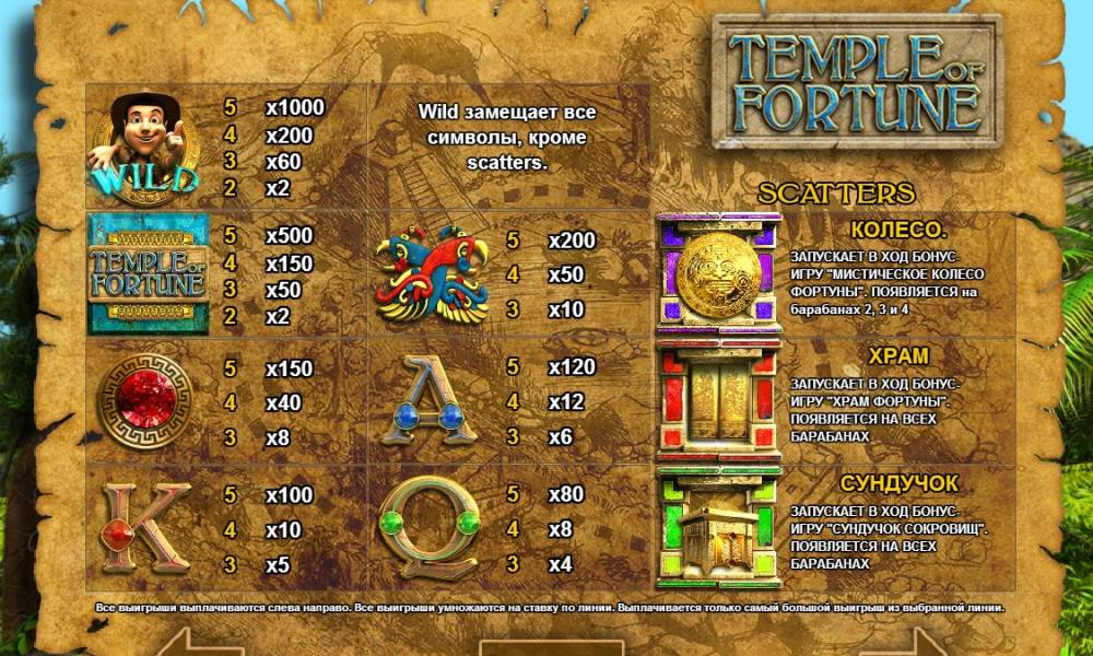 Игровой автомат Temple of Fortune имеет 5 барабанов.