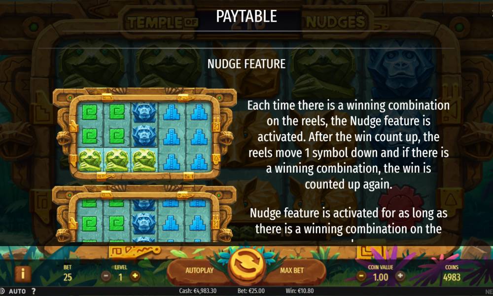 В игровом аппарате Temple of Nudges задействованы разные картинки, система Nudge Feature и респины.
