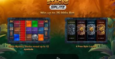 • Free Spins – Три, четыре или пять скаттеров начинают три, четыре или семь фриспинов. Действует система уровней. На каждом следующем этапе увеличивается количество символов в Splitz Mystery Stacks. Максимальное число оплачиваемых цепочек – 248 832.