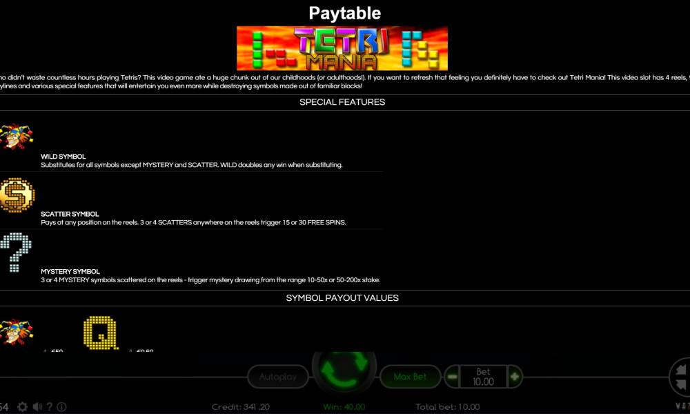 Играть на слоте на деньги дают возможность многочисленные интернет-казино, использующие программное обеспечение данного производителя. Чтобы делать ставки настоящими деньгами на Tetri Mania, нужно открыть аккаунт и внести депозит.
