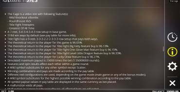 Интересное игровое поле и стандартный вид кнопок управления помогают людям быстро освоиться в игровом автомате The Cage. Запустить его можно за пару шагов: