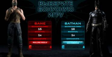 Но основной бонусной игрой видео-слота The Dark Knight Rises является раунд бесплатных спинов с дополнительными возможностями. Перед его началом вам нужно будет выбрать один из двух режимов: спины Бэтмена или спины Бэйна. Вкратце опишем их особенности: