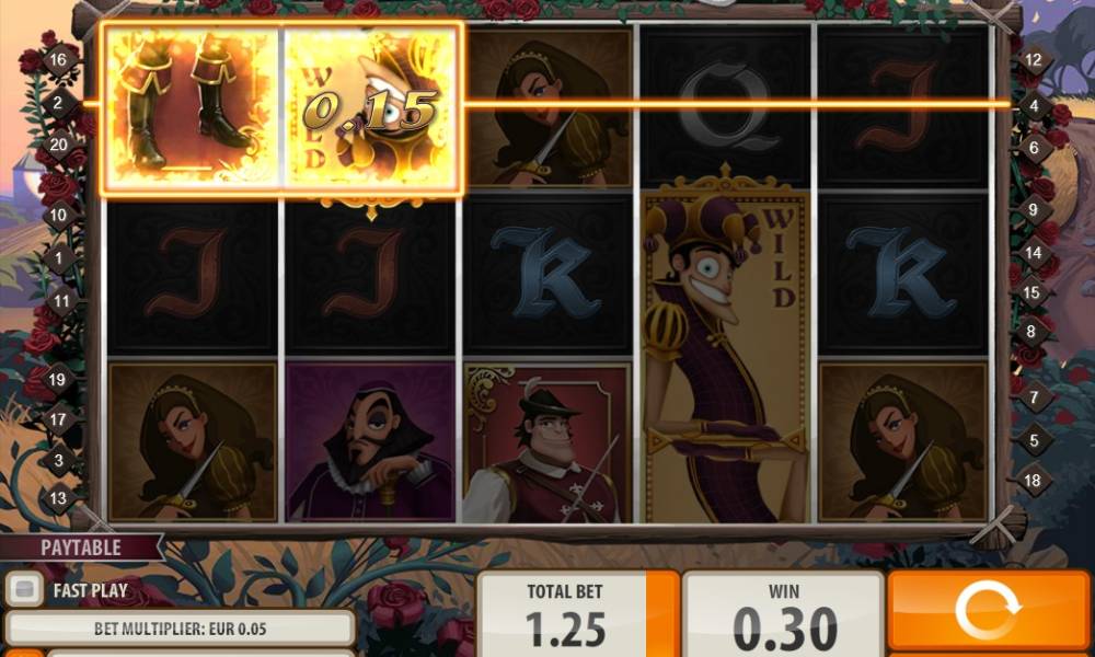 Компания Quickspin предлагаем нам вспомнить незабвенных героев знаменитого романа Александра Дюма, в которых он воспел королевских мушкетеров (к слову, ничем особенным не прославившихся в реальной жизни). Если вы, как и автор статьи, выросли на этой книге и ее многочисленных экранизациях, рекомендуем вам обязательно протестировать бесплатный игровой автомат The Three Musketeers. Как обычно, разработчики данной студии наделили свое детище интереснейшими особенностями и сделали все возможное, чтобы модель получилась яркой, красочной и зрелищной.