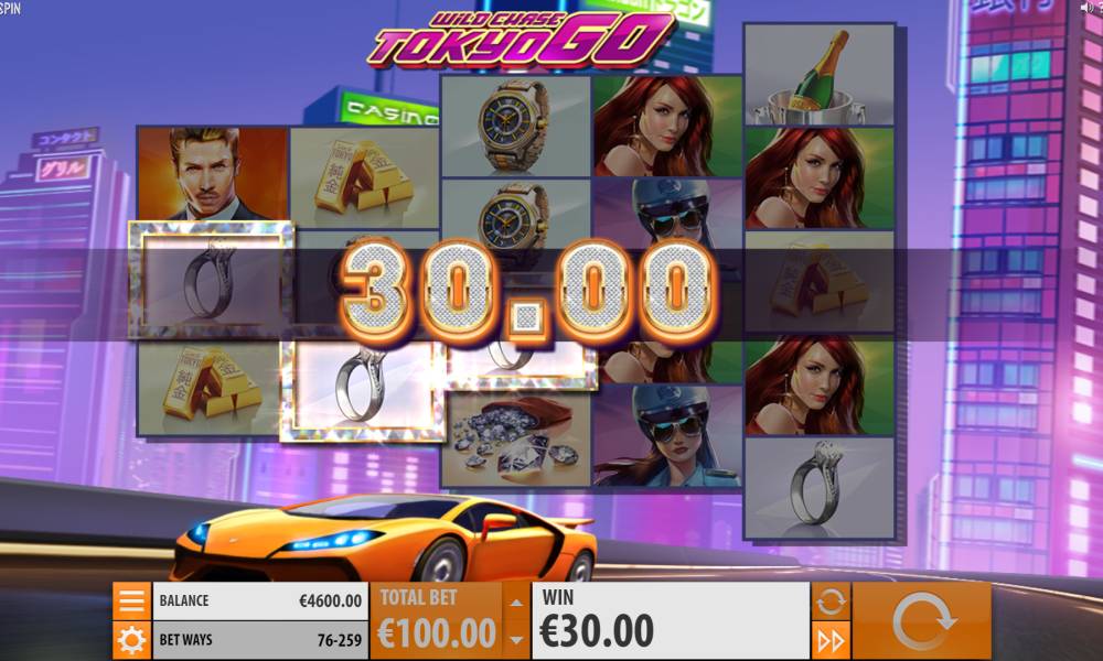Весной 2016 года компания Quickspin выпустила очень зрелищный игровой автомат The Wild Chase, посвященный грабителям банков. Преступники ловко скрывались от полиции на скоростных автомобилях. Осенью 2019 года студия представила новую версию слота, назвав её The Wild Chase: Tokyo Go. Легко догадаться, что действие игры разворачивается на оживлённых улицах Токио.