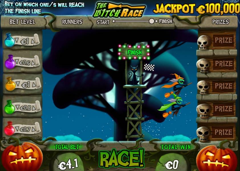 Накопительного джекпота в The Witch Race нет, а максимальный выигрыш за раунд может достигать ста тысяч евро.