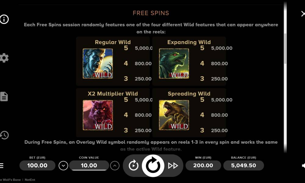 Ниже в обзоре The Wolf’s Bane NetEnt на Casinoz рассказывается об особенностях разных видов символов, исключениях из стандартных правил и расширенных опциях геймплея.