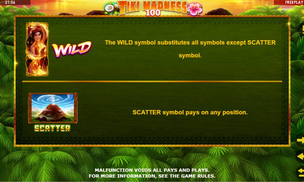 Игровой автомат Tiki Madness 100 от провайдера Amatic Industries посвящен сказочным Гавайским островам. Здесь нет особых функций, но даже без них вы сможете выиграть ценные призы, вплоть до 1000 ставок. Более того, вы сможете получить гарантированную выплату за выпадение символов Scatter.