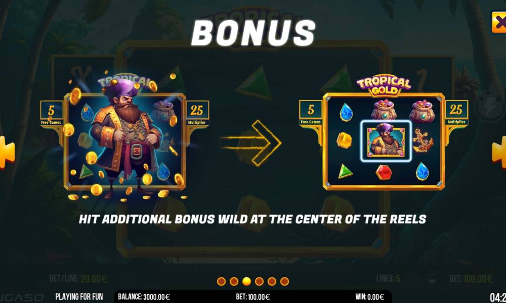 В игре Tropical Gold вас ждёт захватывающее приключение, но самые яркие моменты — это результат активации специальных функций. В каждом раунде вы можете выиграть до пяти бесплатных вращений и получить максимальный выигрыш, который в 1275 раз превышает вашу ставку. Это привлекательное предложение для любителей риска и крупных ставок, но и обычные игроки могут рассчитывать на солидные выплаты.