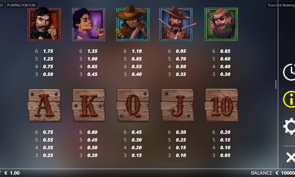 Минбет в слоте True Grit Redemption равен 20 центам.