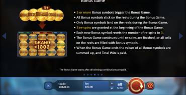 В игровом автомате доступны три фиксированных джекпота. Любой из них можно получить в ходе Bonus Game. Для этого на экране должен выпасть его логотип.