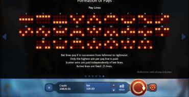 Видеослот имеет пять барабанов и двадцать пять фиксированных линий. Иконки на главном экране выстраиваются по сетке 5х3.