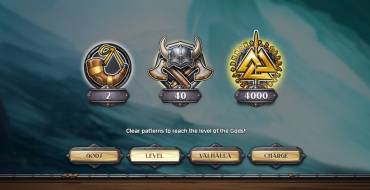 Levels – При запуске модели вы увидите, что на подложке, под картинками на экране, несколько ячеек выделены цветом. Они составляют определенный шаблон. Когда в таком месте оказывается картинка из выигрышной цепочки, цвет ячейки меняются. Чтобы перейти на следующий этап, нужно подобным образом активировать все позиции. На каждом уровне игроку благоволит один из четырех скандинавских богов. Он периодически задействует бонусы.