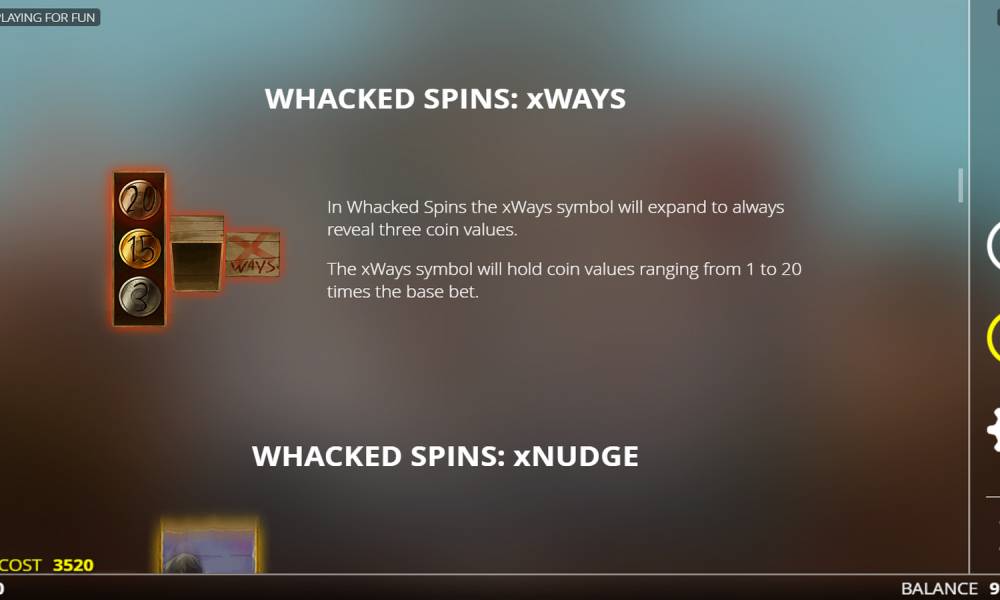 • xWays — открывает от 2 до 4 одинаковых знаков, увеличивая при этом число линий для выплат. В раунде Whacked Spins показывает всегда три одинаковых монеты стоимостью х1-х20.
