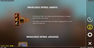 • Whacked Spins. Три символа Scatter запускают раунд из 3 респинов. Они возобновляются каждый раз, когда на поле выпадет монета или другой символ. Под барабанами есть счетчики, которые вбирают в себя все полученные значения. В конце раунда, когда прошло три неудачных спина подряд, все цифры складываются и умножаются на действующую ставку.