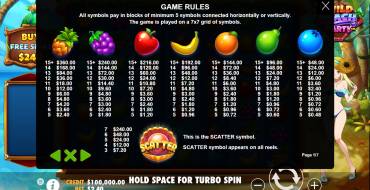 Игровое поле необычного слота Wild Beach Party от провайдера Pragmatic Play имеет вид 7х7. Выплаты производятся по системе Cluster Pays.