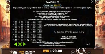 Это игра с высокой степенью волатильности. Уровень RTP видеослота Wild West Gold средний.