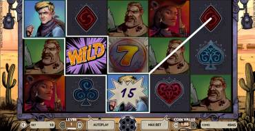 Видео-слот Wild Wild West: The Great Train Heist имеет пять барабанов с разнообразными картинками и десять постоянно активных линий для формирования комбинаций. На экране символы располагаются в три ряда. Играть на автомате можно, поставив на каждую полосу до десяти монет. Ставки по задействованным позициям равны. Доступные номиналы чипов уточняйте в заведении. Например, в 777 casino монеты могут стоить от 0.01 до одного доллара, а на кон принимаются не менее десяти центов и не более ста евро. Кроме базовых картинок, в игре доступны элементы с расширенными функциями, фри-спины с бонусами, тематические призовые раунды и другие интересные особенности. Формирование оплачиваемых цепочек из простых изображений происходит только на десяти полосах. От трех одинаковых картинок должны выстроиться слева направо, образуя непрерывную последовательность. Если в ней четыре или пять символов, выигрыш начисляется только за самый ценный вариант, но в одном спине допускаются несколько оплачиваемых комбинаций. Для каждой из них предусмотрен отдельный коэффициент от х5 до х500. Для расчета выигрыша он умножается на ставку по линии. Все исключения из правил обсуждаются ниже. По завершению спина начисленные деньги автоматически переводятся на основной счет клиента. Раунда на удвоение в The Great Train Heist нет.