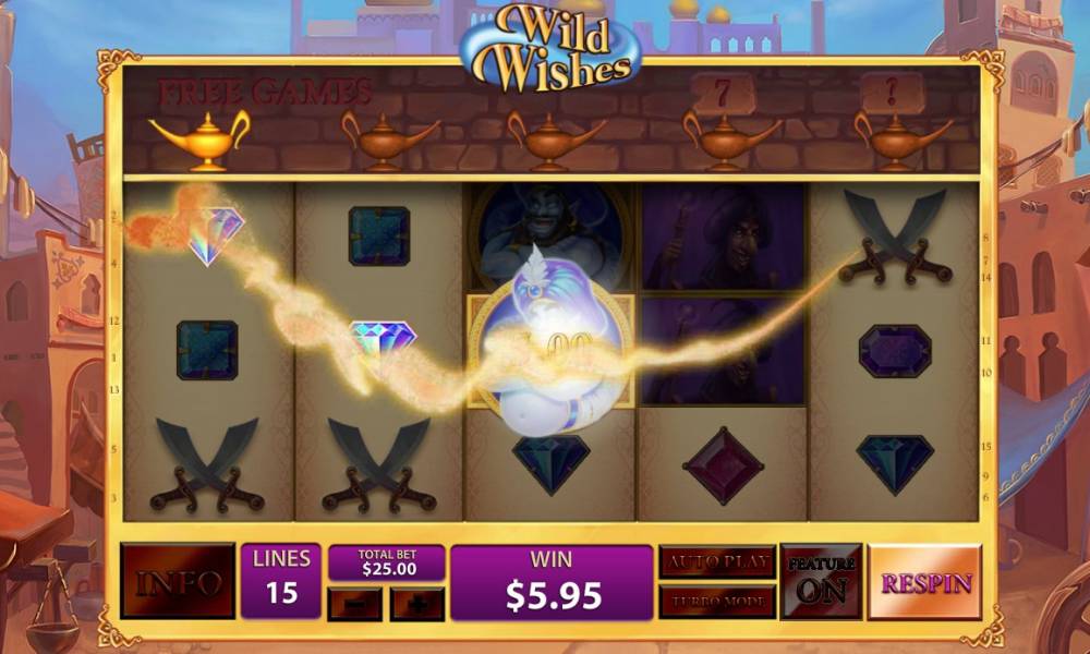 Интересный видео-слот Wild Wishes с необычными возможностями и уникальным дизайном предлагает компания Playtech. Модель имеет базовые и бонусный игровые режимы, сменяющееся количество активных линий и символов на экране, различные призовые опции, а также многое другое, о чем рассказывается в обзоре от Casinoz. Посвящена игра старинным восточным сказкам об Аладдине и джинне из лампы, исполняющем желания.