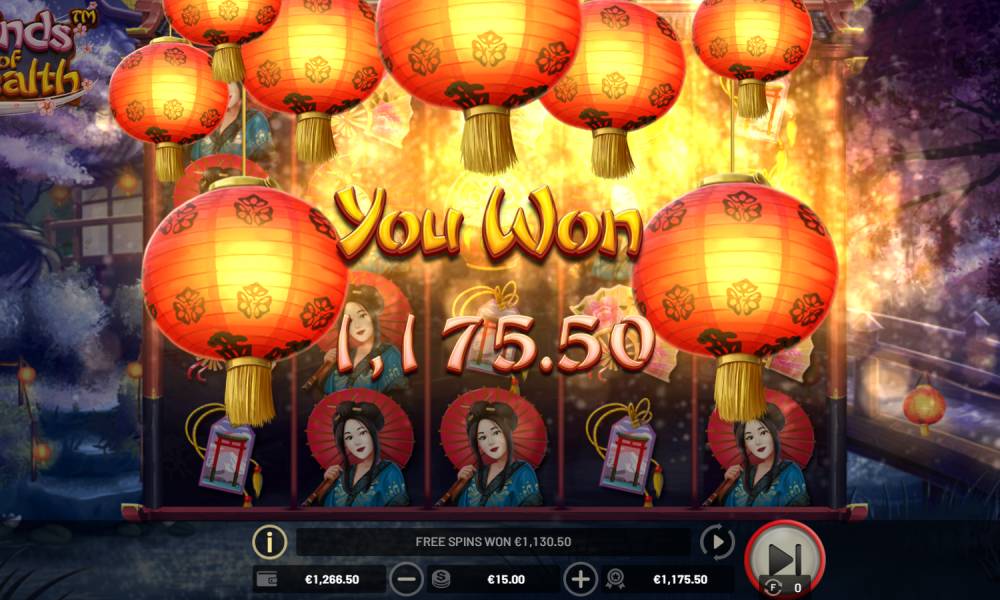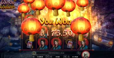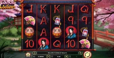 Пятибарабанный слот имеет 20 ячеек и 30 фиксированных линий для выплат. В базовом раунде выигрышные комбинации складываются слева направо с первого барабана. Во время бонусной функции оплата происходит в обе стороны. Шесть младших символов дают вознаграждение з 3-5 штук на линии, а четыре старших — за 2-5 знаков. В слоте Winds of Wealth присутствуют фриспины, специальные символы, бонусные функции. С их помощью можно получить максимальный выигрыш х1506 от ставки. Пользователь может выбирать удобные суммы в диапазоне 0.3-180 евро, чтобы ставить их на спины.