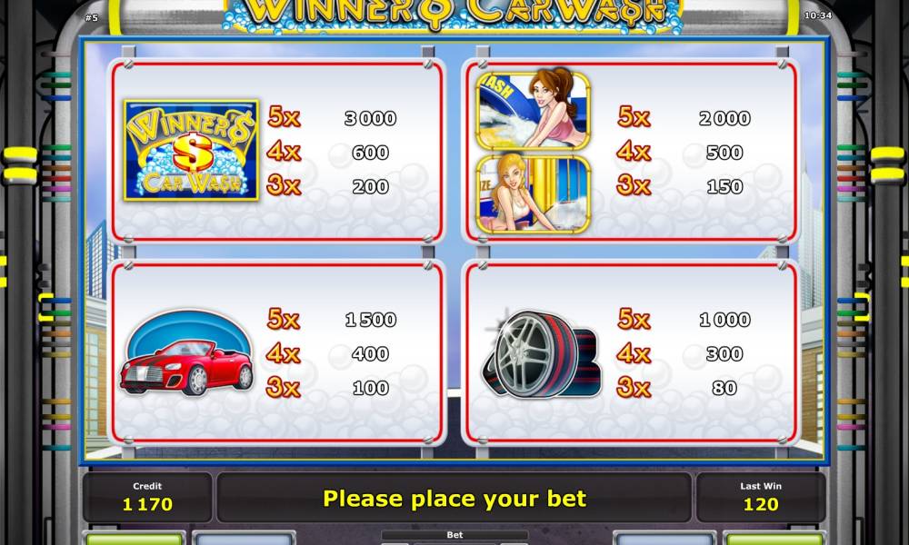 Всем привет. Лучшая игра Winner’s Car Wash (Автомойка для победителя) от широко известной в игровых кругах компани Novomatic. Можно поиграть бесплатно в демо режиме и за реальные деньги