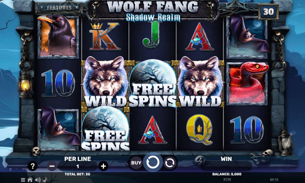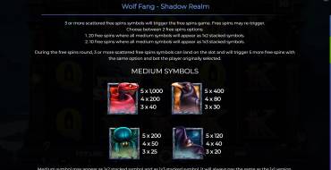 Интерфейс Wolf Fang – Shadow Realm предельно прост и удобен. Он предоставляет игроку все необходимые возможности, но при этом он содержит на главном экране минимум кнопок. При помощи "+" c "-" устанавливается ставка нужного размера,"Buy" запускает покупку бонуса, "Spin" и "Auto" начинают вращение барабанов, а "?" вызывает внутриигровую ставку. Для начала игры следует: