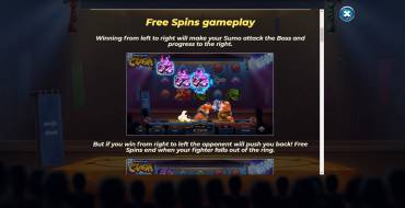 С первого взгляда на игру становится понятно, что это небанальный видеослот. Действие происходит в зале, где на глазах у многочисленных зрителей проходят поединки по сумо. На арене, расположенной между барабанами и панелью управления, постоянно находятся два борца, готовые броситься друг на друга по сигналу судьи, но бой начинается в ходе фриспинов.