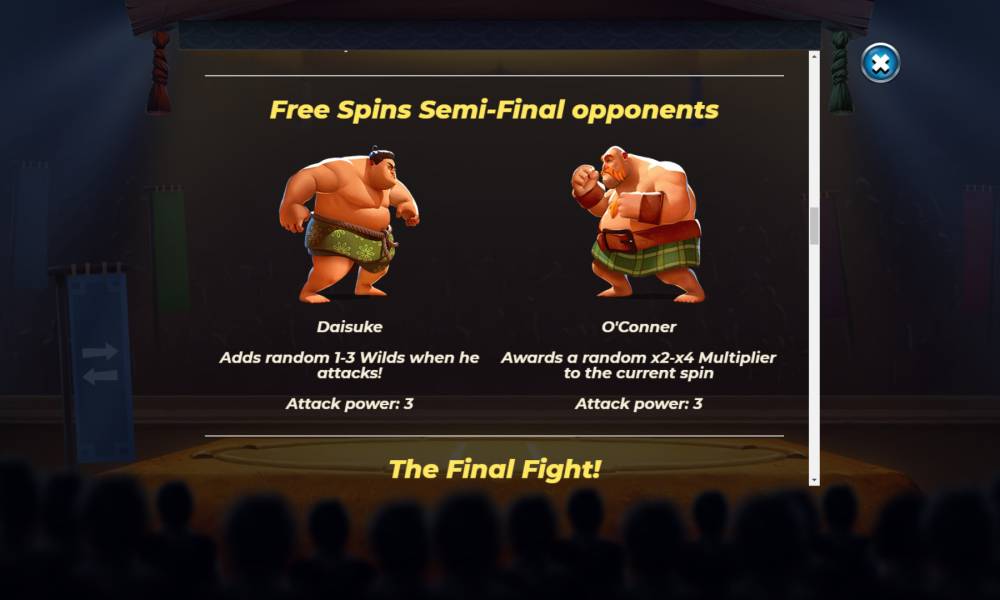 В игровом аппарате Yokozuna Clash задействованы базовые иконки, джокер, скаттер, многоуровневые фриспины с бонусами и дополнительные функции.