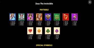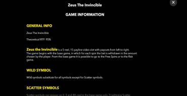 Оценить отдачу Zeus the Invincible можно по этим параметрам: